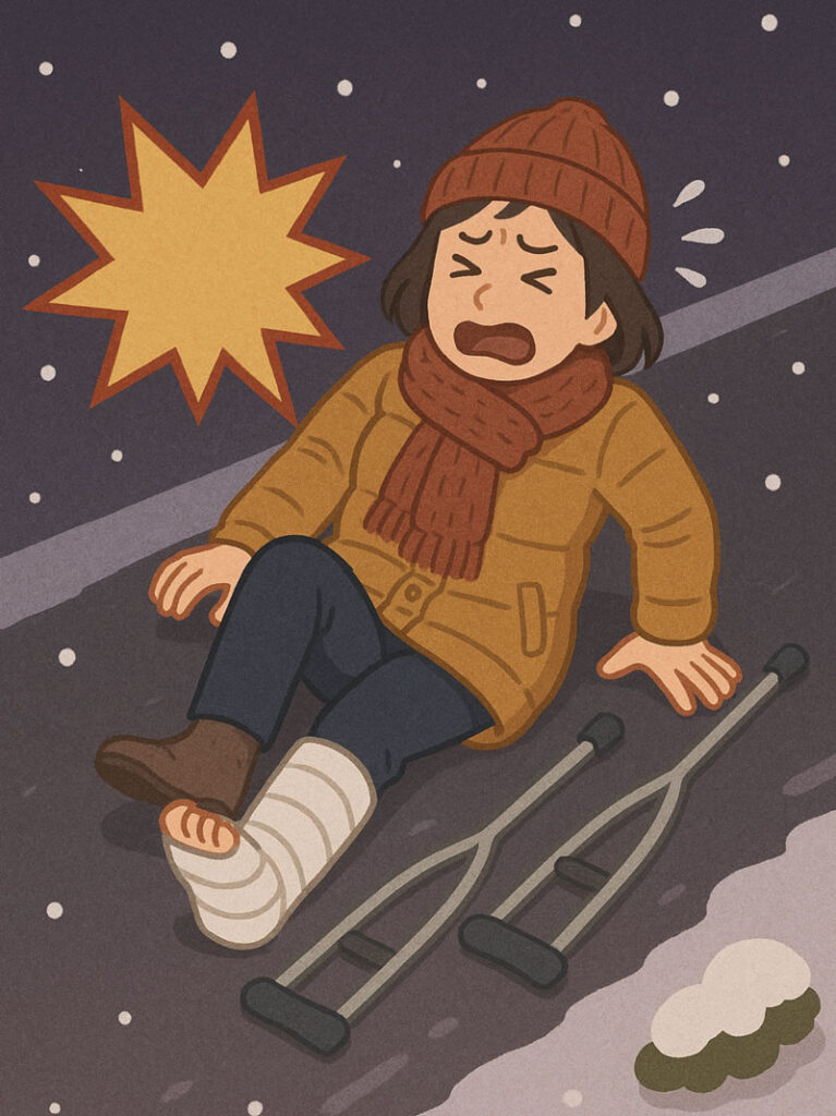 「ゴキッ」と嫌な音がして、あっという間に雪の上に転がっていた。救急搬送され、診断は複雑骨折。手術と長い入院生活、退院しても松葉杖が手放せない日々。職場に復帰しても、通勤や買い物が億劫だった。