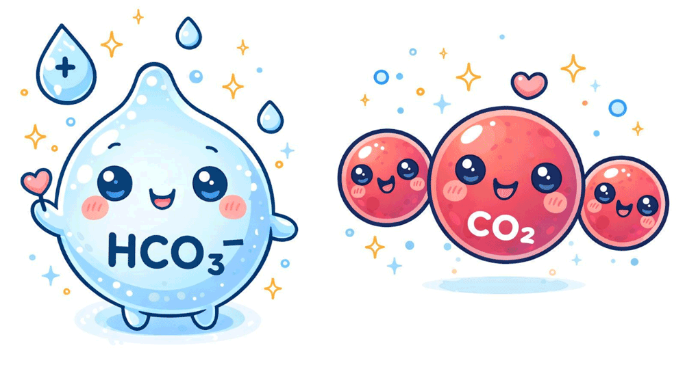 👉 HCO₃⁻(炭酸水素イオン)